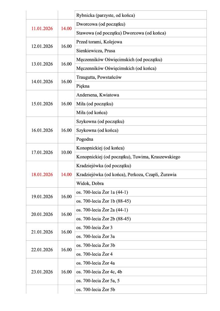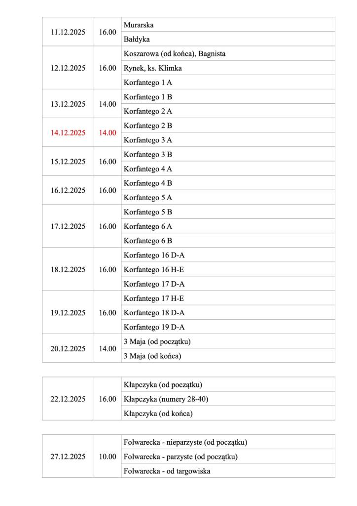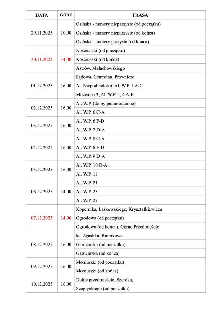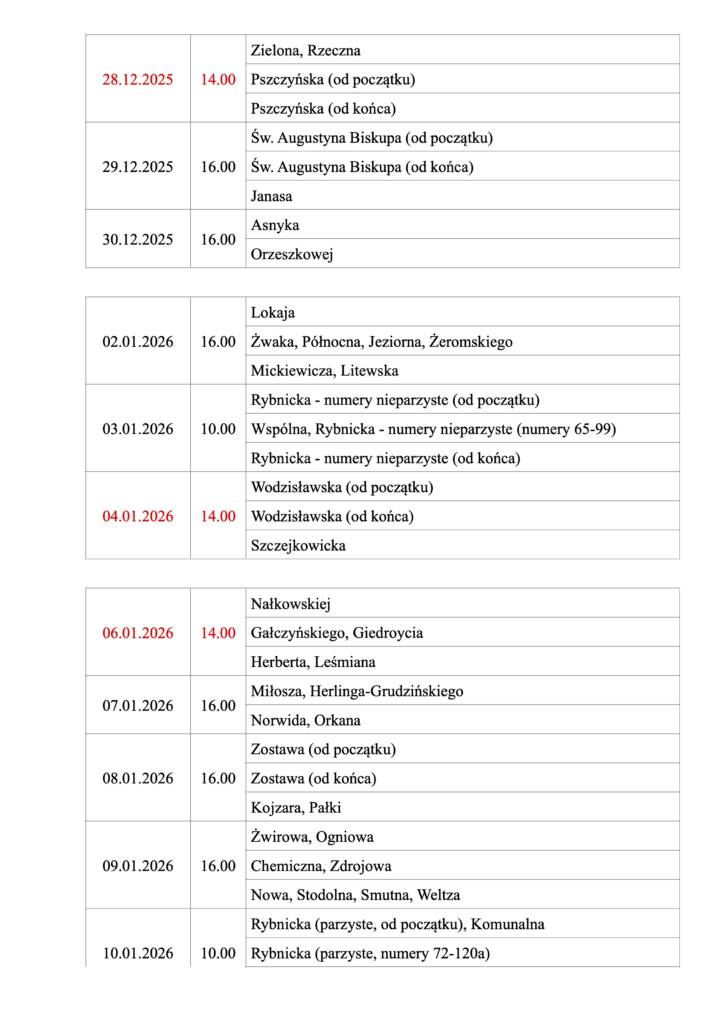 Plan odwiedzin kolędowych: